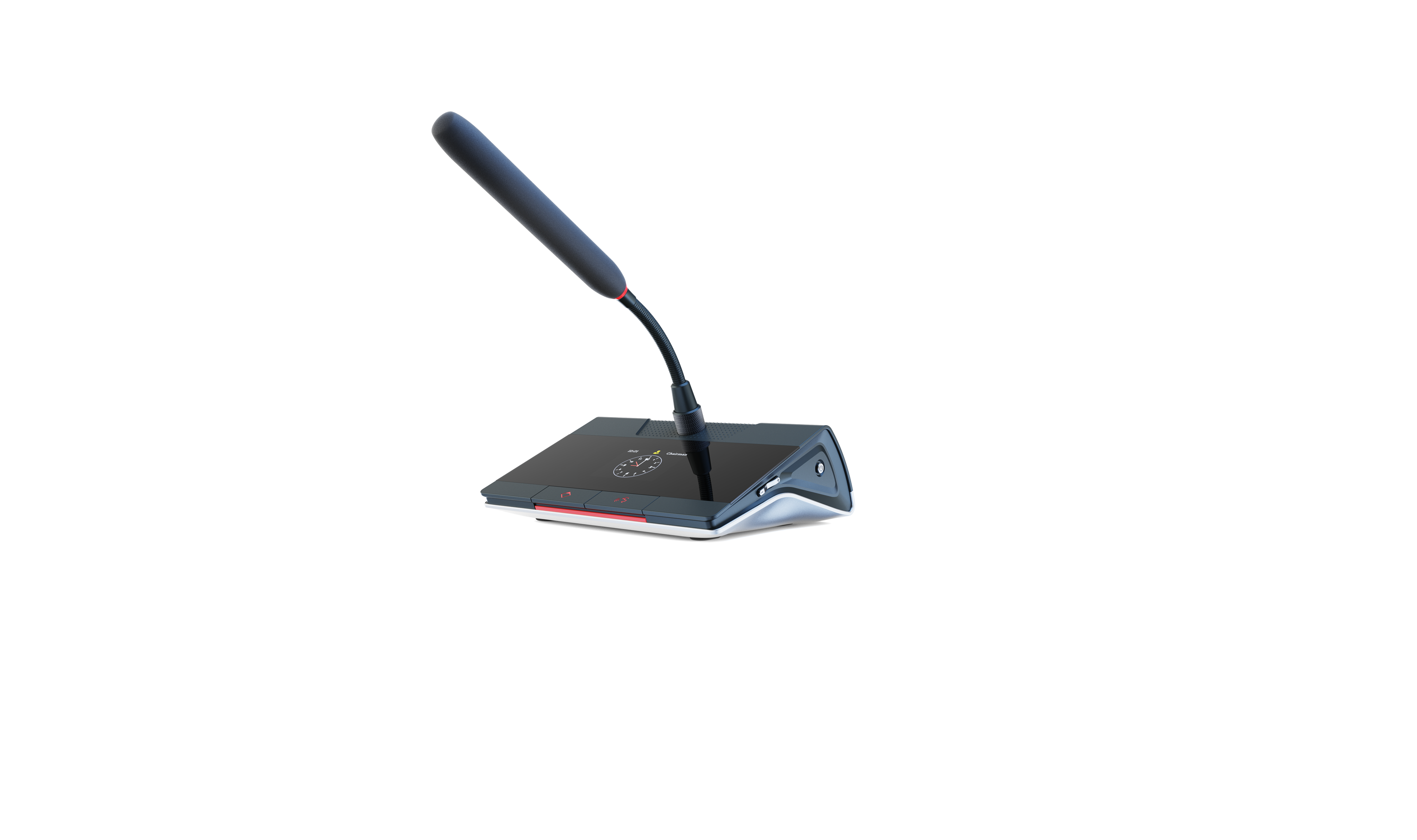 8.精致典雅的2.4寸TFT显示屏可显示以下信息:发言者角色(如主席、代表、VIP等)、话筒ID号、屏保时钟、话筒音量值、发言计时、5格电量显示、4格信号指示;